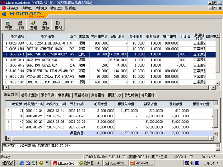 Comprehensive MRPII System: Get the Details of Material Requirement on each interval
