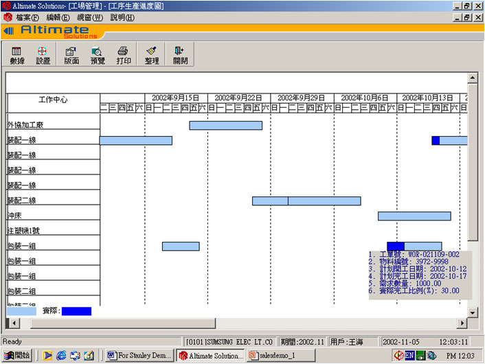 Shop Floor Control: Production status Monitored by Sales Order, detailed down to Operations level