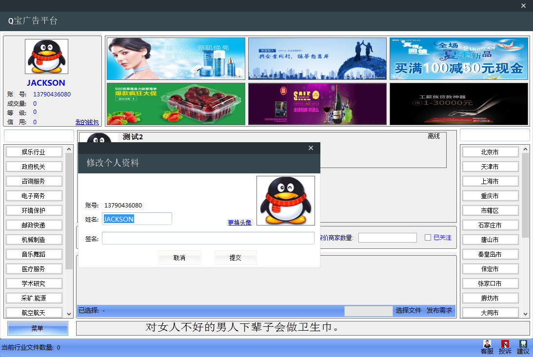 1、Q宝广告平台集在线聊天、在线询价、在线报价、在线交易、评论、红包功能于一体,按区域投放广告。